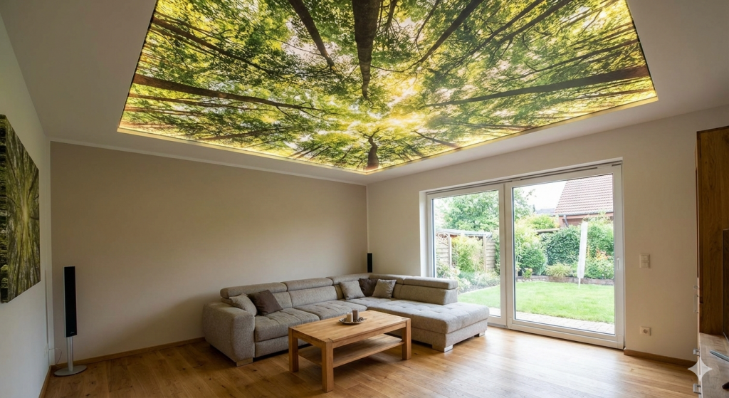Foto-Print Spanndecken bieten eine einzigartige Möglichkeit, Ihre Decke mit einem individuellen Wunschmotiv zu gestalten. Diese Option eignet sich besonders, wenn Sie Ihrem Raum eine persönliche Note verleihen möchten, sei es mit Fotos, Kunstwerken oder speziellen Designs. Ideal sind sie für Wohnräume, Büros, Kinderzimmer oder auch gewerbliche Räume, in denen ein bestimmtes Thema oder Firmenlogo präsentiert werden soll.