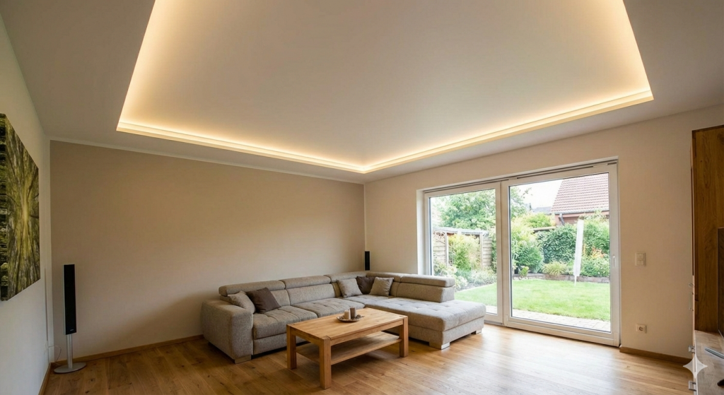 Zusätzlich kann die Beleuchtung individuell gestaltet werden, beispielsweise durch Farbwechsel oder dimmbare LEDs, um die Stimmung im Raum flexibel anzupassen. Insgesamt bietet die beleuchtete Spanndecke eine Kombination aus Ästhetik und Funktionalität, die Räume optisch aufwertet und für angenehmes Licht sorgt.