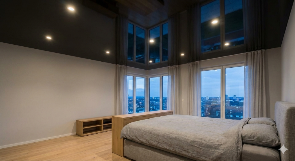 Klassische Spanndecken überzeugen durch ihre zeitlose Eleganz und schlichte Ästhetik. Sie eignen sich besonders gut für Räume, in denen ein zurückhaltendes, aber hochwertiges Design gewünscht wird, wie Wohn- und Schlafzimmer, Büros oder Flure. Die glatte, matte oder leicht glänzende Oberfläche fügt sich harmonisch in verschiedene Einrichtungsstile ein und sorgt für ein ruhiges Raumambiente.